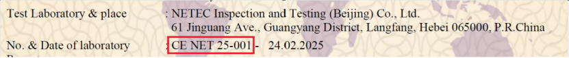 為進(jìn)一步提升CE認(rèn)證服務(wù)的質(zhì)量,NETEC已從2025年3月1日起啟用CE專用的報(bào)告編號(hào):“CE NET?XX(年份)-XXX(流水號(hào))”,以便識(shí)別是滿足CE認(rèn)證要求的試驗(yàn)報(bào)告。NETEC鄭重聲明:其他編號(hào)的報(bào)告(如型式試驗(yàn)報(bào)告)從未授權(quán)任何機(jī)構(gòu)用于簽發(fā)CE證書(shū)。如若被非授權(quán)使用,NETEC不承擔(dān)任何相關(guān)責(zé)任。