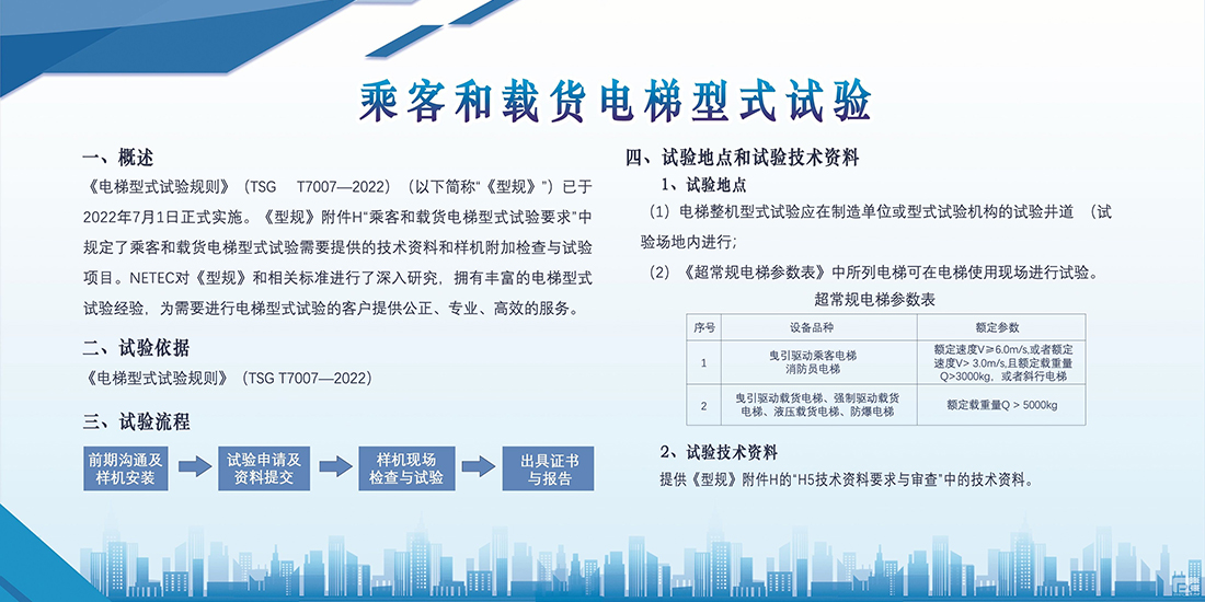 NETEC是在國內(nèi)最早開展電梯檢驗及型式試驗的機構(gòu),試驗電梯種類覆蓋全梯種,包括曳引與強制驅(qū)動電梯、液壓驅(qū)動電梯、自動扶梯與自動人行道、防爆電梯、消防員電梯、雜物電梯、斜行電梯及特殊電梯等;試驗業(yè)務(wù)遍布全球各地,中國尊北京中信大廈、上海中心大廈、上海環(huán)球金融中心、上海東方明珠大廈、廣州新電視塔、日本愛知縣三菱電梯總部、瑞士盧塞恩迅達電梯工廠、芬蘭赫爾辛基通力電梯總部等地均有NETEC服務(wù)的足跡。